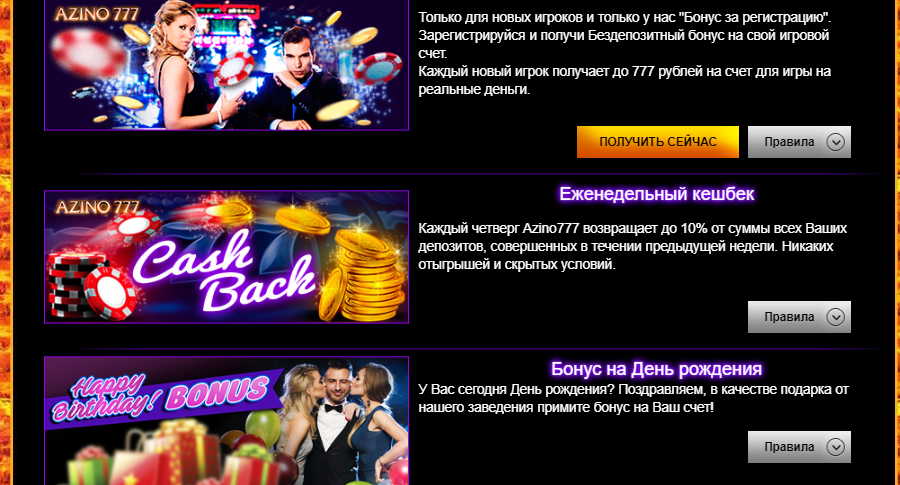 Отзывы про акции Азино: бонус без депозита 777 рублей и еженедельный кэшбэк